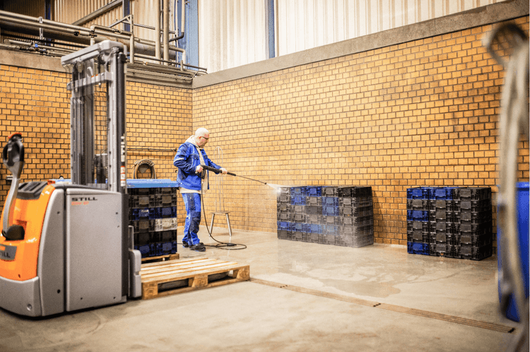 - Temperatur: Heißwasser reduziert Viskosität von Ölen/Fetten, beschleunigt die Reinigung.